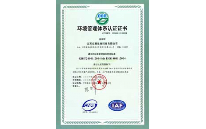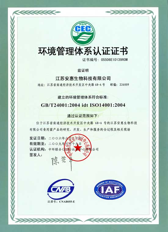 2006年6月20日,公司通過ISO14001環境管理體系認證。