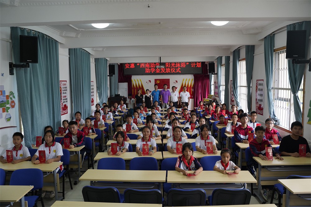 活動上,安惠公司為麻尾小學、獨山四中捐贈洗浴物資,為麻尾小學校舍捐贈1臺空氣能熱水器。儀式后, 一場簡樸溫馨的助學金發(fā)放儀式在麻尾小學多功能廳開啟,安惠江海志愿者將助學金分發(fā)到受助學生手中,受資助的學生們紛紛致謝,表示將珍惜機會,努力學習,保持奮發(fā)向上的精神,以優(yōu)異的成績感恩父母、造福家鄉(xiāng)、回報社會。