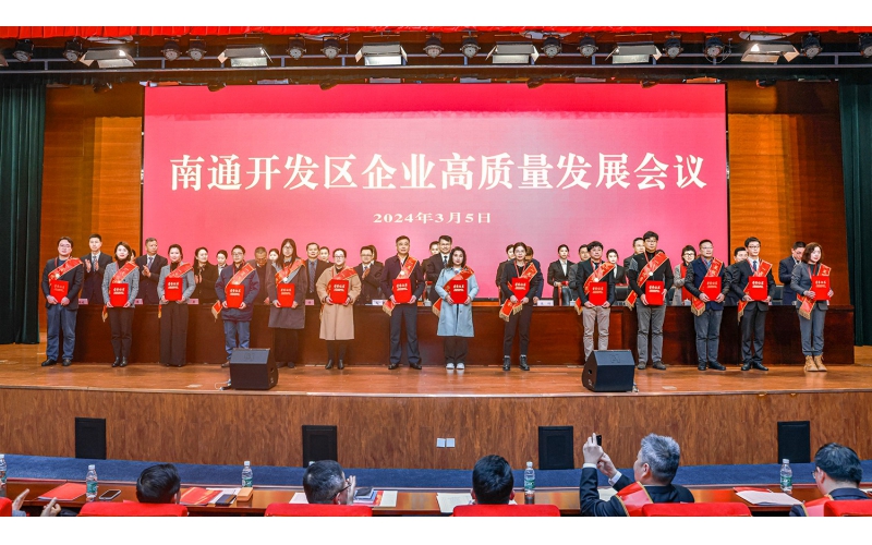 2024年3月5日,南通開發(fā)區(qū)召開全區(qū)企業(yè)高質(zhì)量發(fā)展大會,表彰先進、激勵奮進,動員全區(qū)上下深入學習貫徹黨的二十大精神和習近平總書記對江蘇工作重要講話重要指示精神,認真貫徹中央、省、市重要會議部署要求,以新型工業(yè)化為引領,堅定不移走好產(chǎn)業(yè)立區(qū)、制造強區(qū)、科創(chuàng)興區(qū)之路,加快構建現(xiàn)代化產(chǎn)業(yè)體系,大力發(fā)展新質(zhì)生產(chǎn)力,全力推動高質(zhì)量發(fā)展。