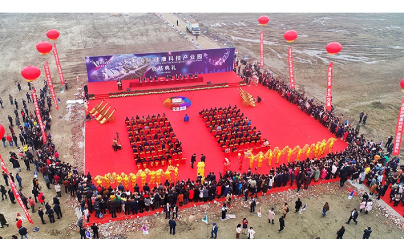 2018年11月30日,安惠國際健康科技產業園舉行奠基典禮,南通市經濟技術開發區領導及有關部門負責人,行業領導、專家,安惠公司中高層管理人員和優秀經銷商代表160多人出席活動。